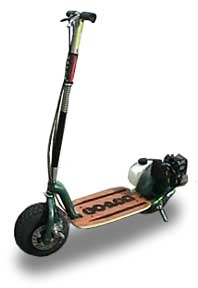 Maximum Performance 5 Km per litre Weighs only 9 Kg Precision 2-Stroke Engine Folds quickly and easily Supports up to 180 Kg Over 30 kph of hill-climbing power No assembly required Recommended Retail Price: $1,250 The SPORT model is the original Go-PedŽ® . The SPORT model has a direct-drive transmission, thereby giving it a better response to the throttle. The SPORT is equipped with an innovative two-stage muffler system to keep noise under control. The birch-ply foot deck has an anti-slip coating for maximum safety and control. Racing enthusiasts can equip the SPORT with high-performance engine modification kits. If you want maximum reliability, peak performance, and low cost, the SPORT is for you. Available in Red or Blue ![]()