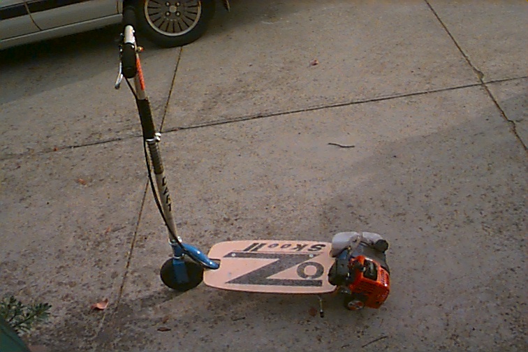 ˇ· 2 stroke 22cc zip start engine with clutch ˇ· Non slip deck ˇ· Maximum speed 30km ˇ· Throttle and braking controls ˇ· Weighs approximately 9kg ˇ· Adjustable folding head stem ˇ· Durable solid rubber tyres ˇ· Available in 5 colours (red, blue, yellow, black and chrome) ˇ· Retail price- $829 ![]() ![]() ![]() ![]() |